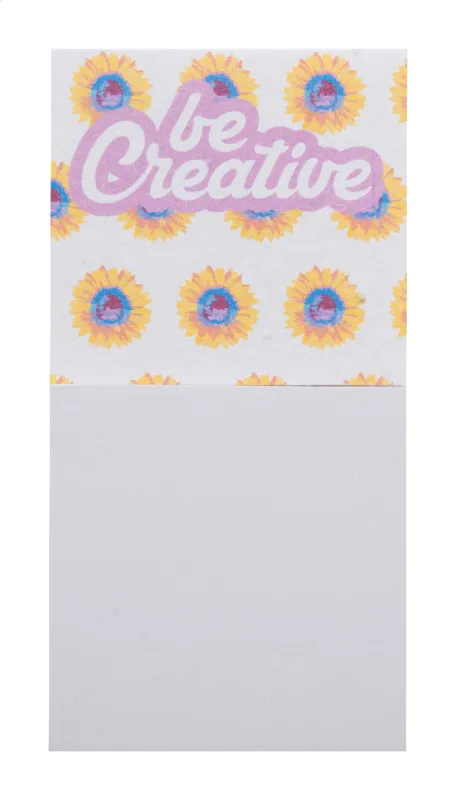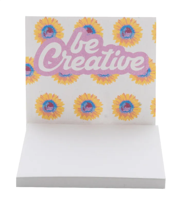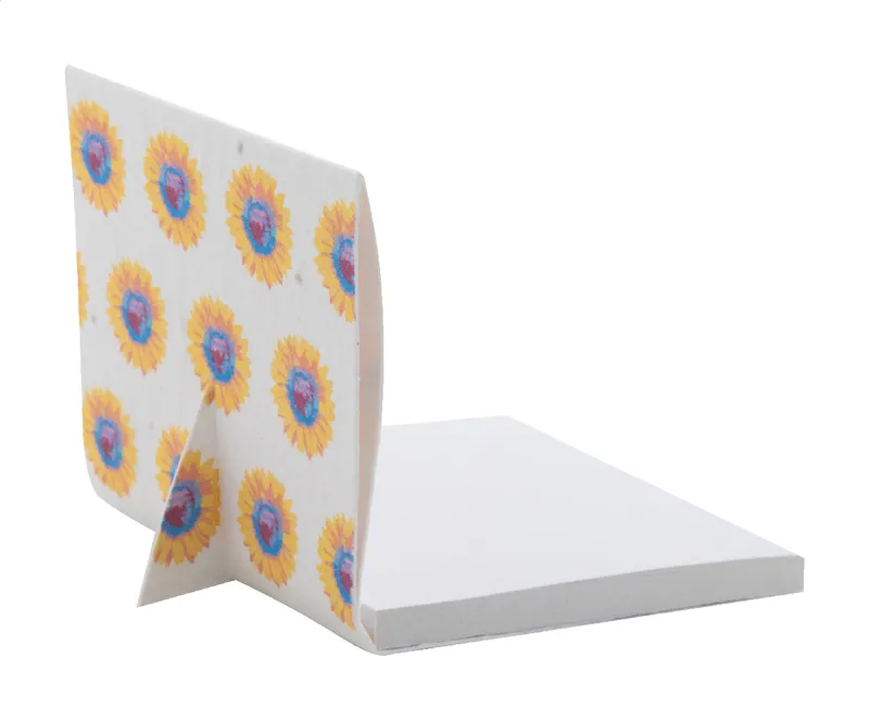 Egyedi gyártású, magpapírból készült öntapadós jegyzettömb adagoló függőleges fejléccel. 50 újrahasznosított papírból készült öntapadós jegyzetlapot tartalmaz (75×75 mm). Az ár tartalmazza a tartó full colour nyomtatását. Minimális rendelési mennyiség: 100 db. Válogatott vadvirág magokkal.