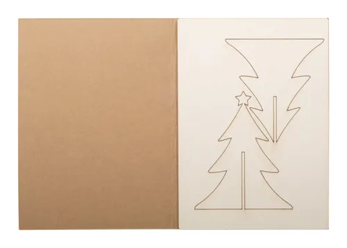 Egyedi grafikával, kraft papírból és cellulóz lemezből készült karácsonyi üdvözlőlap összerakható karácsonyi asztaldísszel. Mindkét oldalon egyedileg grafikázható. C6 borítékkal szállítjuk. Minimális rendelési mennyiség 100 db.