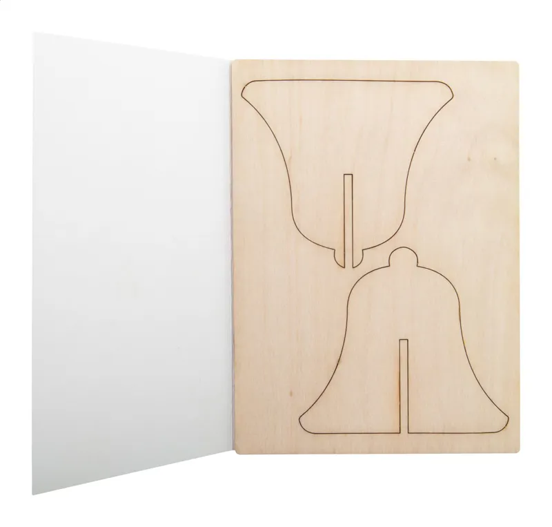 Egyedi grafikával, papírból és fából készült karácsonyi üdvözlőlap összerakható karácsonyi asztaldísszel. Mindkét oldalon egyedileg grafikázható. C6 borítékkal szállítjuk. Minimum rendelési mennyiség: 100 db.