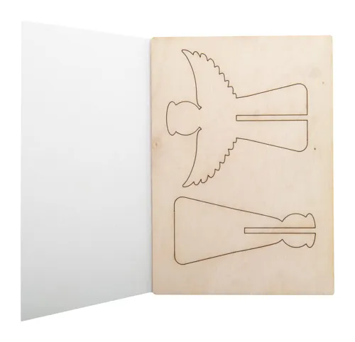 Egyedi grafikával, papírból és fából készült karácsonyi üdvözlőlap összerakható karácsonyi asztaldísszel. Mindkét oldalon egyedileg grafikázható. C6 borítékkal szállítjuk. Minimum rendelési mennyiség: 100 db.