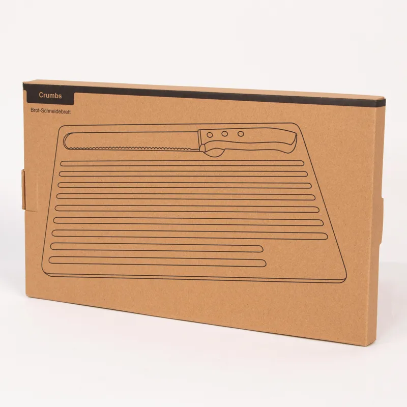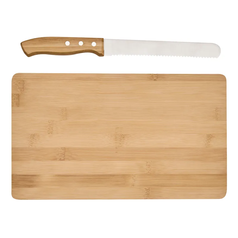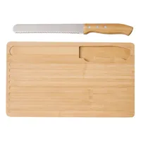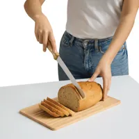 CRUMBS bambusz vágódeszka: kenyérvágó kés rozsdamentes acél pengével és bambusz nyéllel, a kés tökéletesen tárolható a mélyedésben