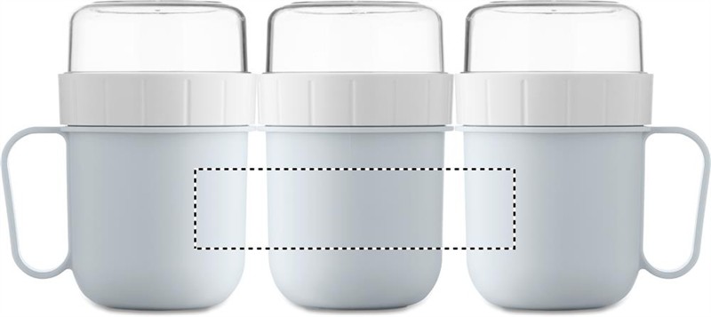 Reggeliző- vagy úti bögre PP-ből, PS tartállyal. A két külön rekeszben elkülöníthetők a hozzávalók. Szivárgásmentes. Űrtartalom: 450 ml és 160 ml.