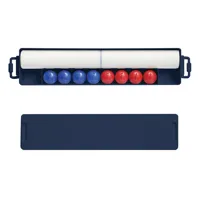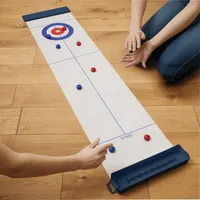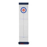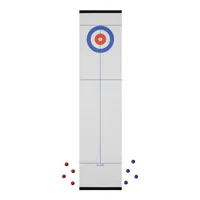 CURLING TIME asztali játék: 4 piros és 4 kék curling kővel, beépített acélgolyóval, amely hasonlóvá teszi az igazi jégen történő csúszáshoz, játéktér kb. 121 cm hosszú célkörrel, a játéktér rögzítése a doboz elejéhez és a doboz fedelének végéhez tépőzáras rögzítéssel történik, dobozban