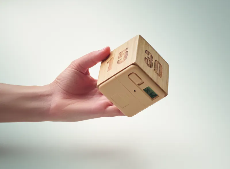 Bambusz elforgatós időzítő visszaszámlálós kijelzővel. 2 db AAA elemmel működik, elem nélkül szállítjuk.