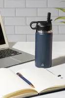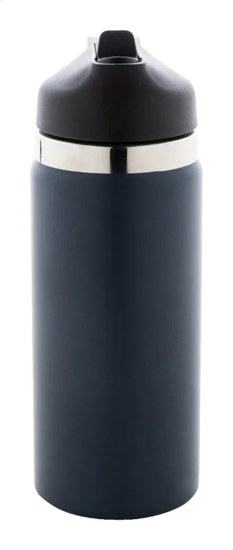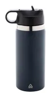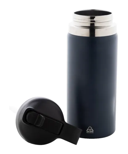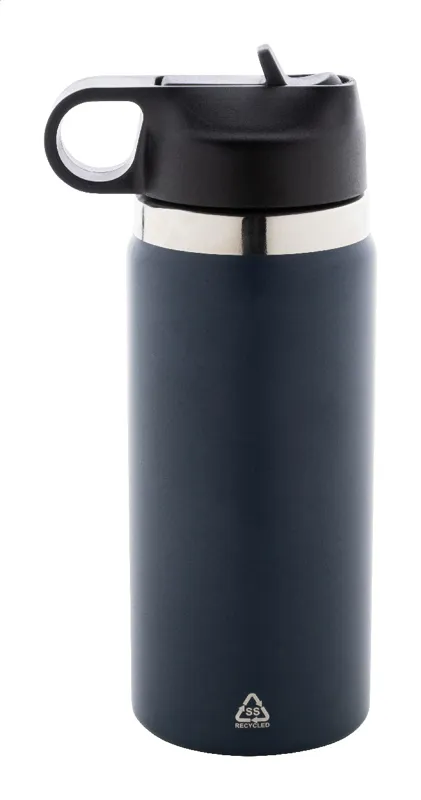 Duplafalú, újrahasznosított rozsdamentes acélból készült termosz pattintható PP ivófedéllel, hordozófogantyúval és beépített szívószállal. 500 ml.