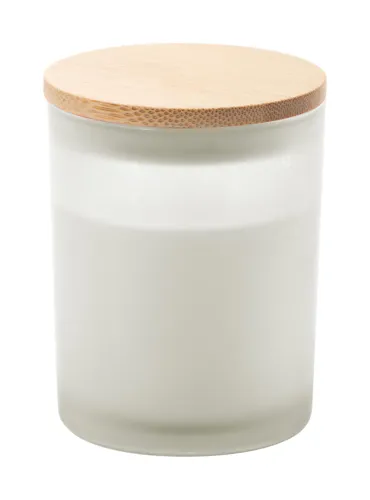 Növényi alapú illatgyertya homokfúvott üvegtartóban, bambusz tetővel. 200 gramm viaszt tartalmaz. Kraft papír dobozban szállítjuk. Növényi alapú illatgyertya homokfúvott üvegtartóban, bambusz tetővel. 120 gramm viaszt tartalmaz. Kraft papír dobozban szállítjuk. fehér - vanília, piros - fahéj, zöld - fenyőfa, fekete - szantálfa