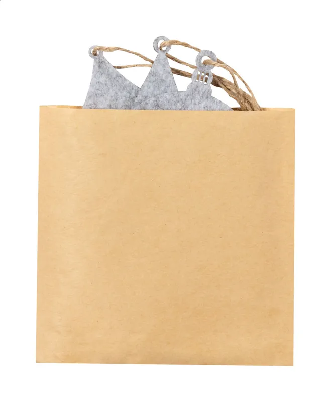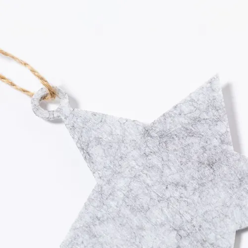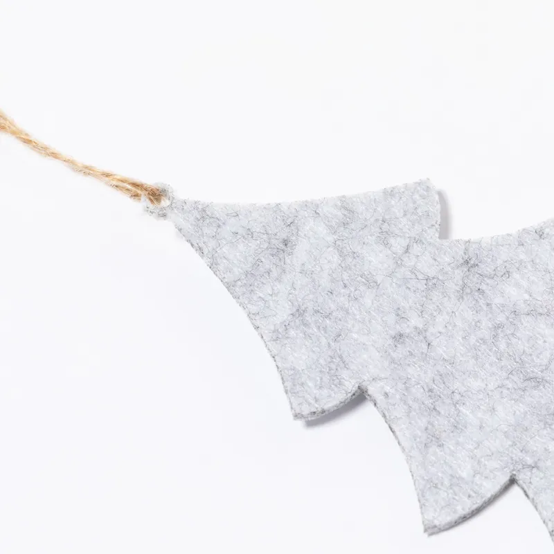 3 db-os filc karácsonyfadísz szett juta zsinórral. Gömb, csillag és karácsonyfa formájú díszeket tartalmaz.