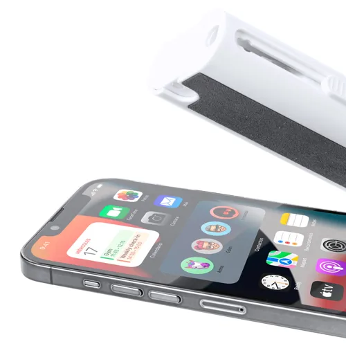 Többfunkciós képernyő- és készüléktisztító készlet ABS műanyag házban. Tisztítófolyadék nélkül szállítjuk.