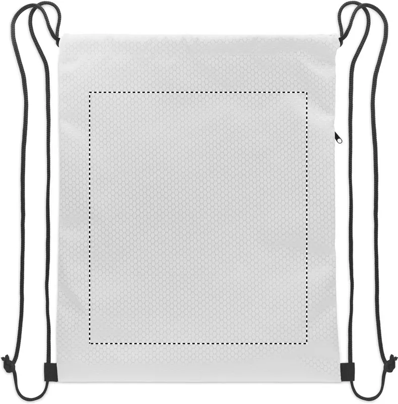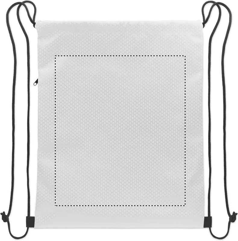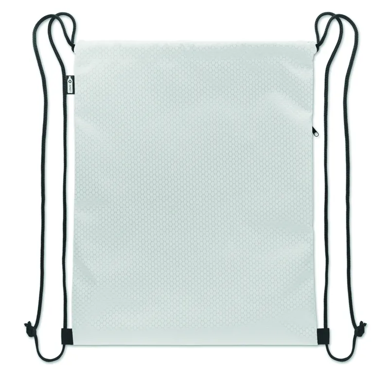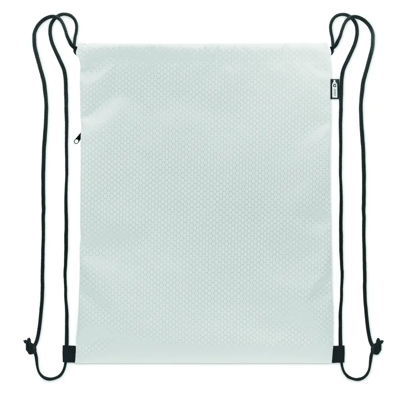 Húzózsinóros táska 420D RPET poliészterből, függőleges oldalsó cipzáras zsebbel, 210D RPET béléssel. Tartós zsinórokkal mindkét oldalon. Kapacitás: 4,5 l, maximális teherbírás: 5 kg.