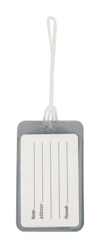 PVC bőröndcímke, hátoldalába csúsztatható adatkártyával.