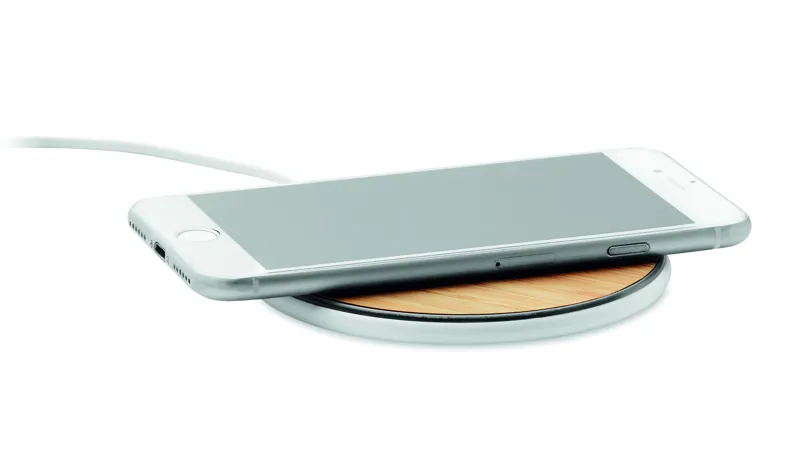 15W vezeték nélküli töltő bambusz fedlappal és ABS aljjal. Csatlakoztassa a készüléket a számítógéphez, helyezze rá az okostelefont és hagyja töltődni. Teljesítmény: DC 9V/1,10A (15W) a gyors töltéshez. A bambusz természetes anyag, sz