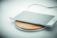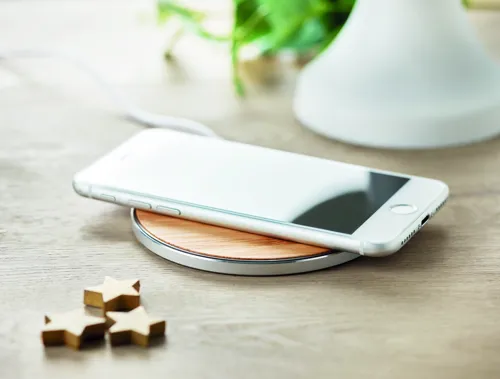 Vezeték nélküli gyorstöltő bambuszból és alumíniumból. A töltést kék fény jelzi. DC9V/1.1A (10W) teljesítmény. A bambusz természetes anyag, termékenként szín- és méretbeli eltérések jelentkezhetnek, ami befolyásolhatja a dekoráció