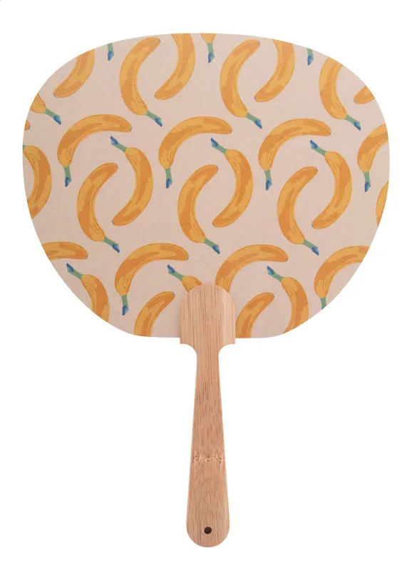 Kraft papírból készült, egyediesíthető legyező, bambusz nyéllel. A papír rész mindkét oldalon egyedi grafikával készül. Minimális rendelési mennyiség: 100 db.