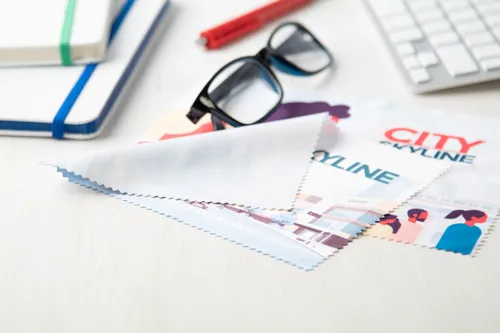 Nagy méretű mikroszálas (180 g/m²) szemüveg-és képernyő törlőkendő. Ideális szublimációs eljáráshoz.