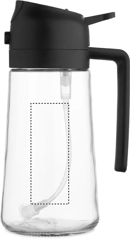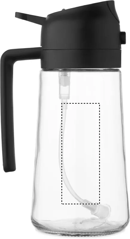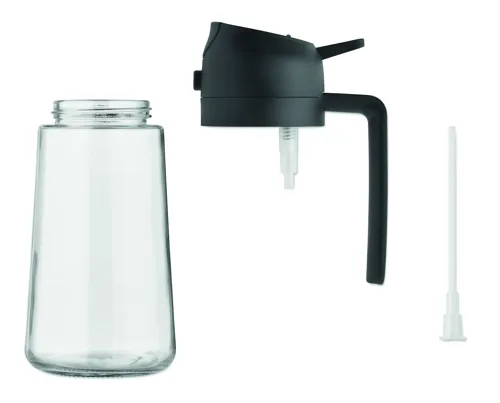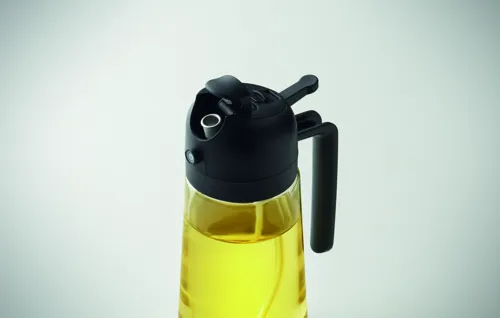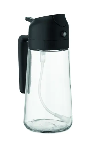 2 az 1-ben üveg olajtartó és szórófejes adagoló PP fedéllel, PE szívószállal. Űrtartalom: 450 ml.