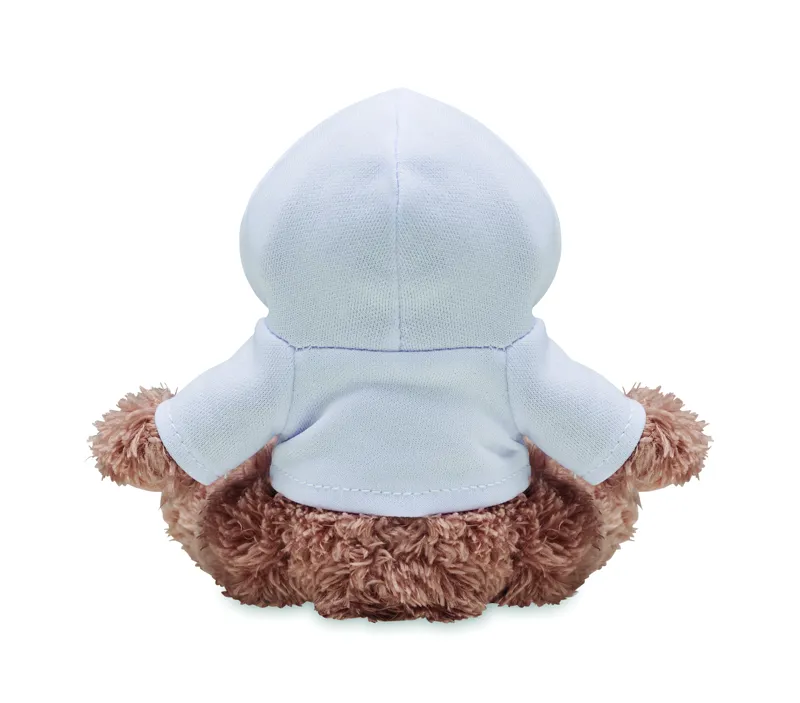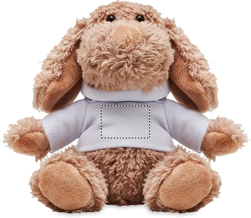 Kapucnis pulóvert viselő plüss kutya. A pulóver ideális szublimációs nyomtatáshoz.