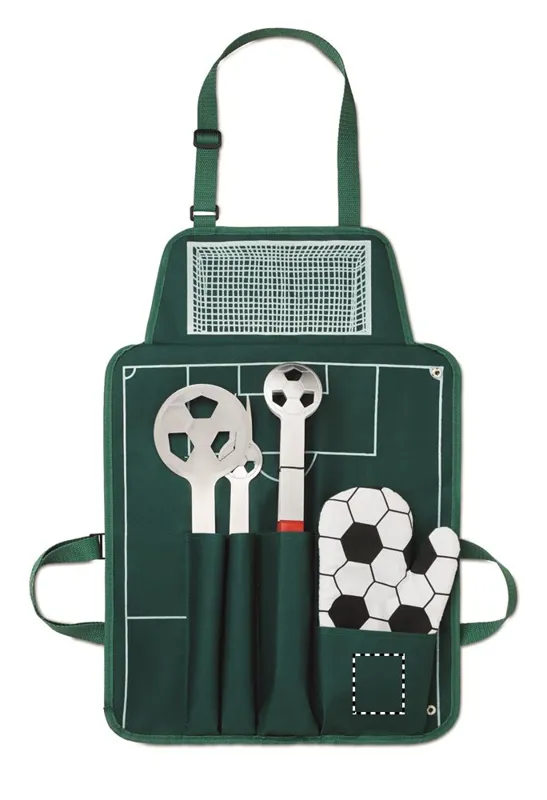 600D poliészter kötény 3 különböző grillező eszközzel és egy kesztyűvel.