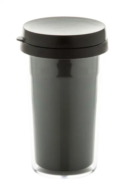 Műanyag, duplafalú thermo pohár levehető fedéllel. A bögre 2 fala közé egyedi nyomtatott grafika helyezhető. Fehér kartondobozban szállítjuk, 250 ml.