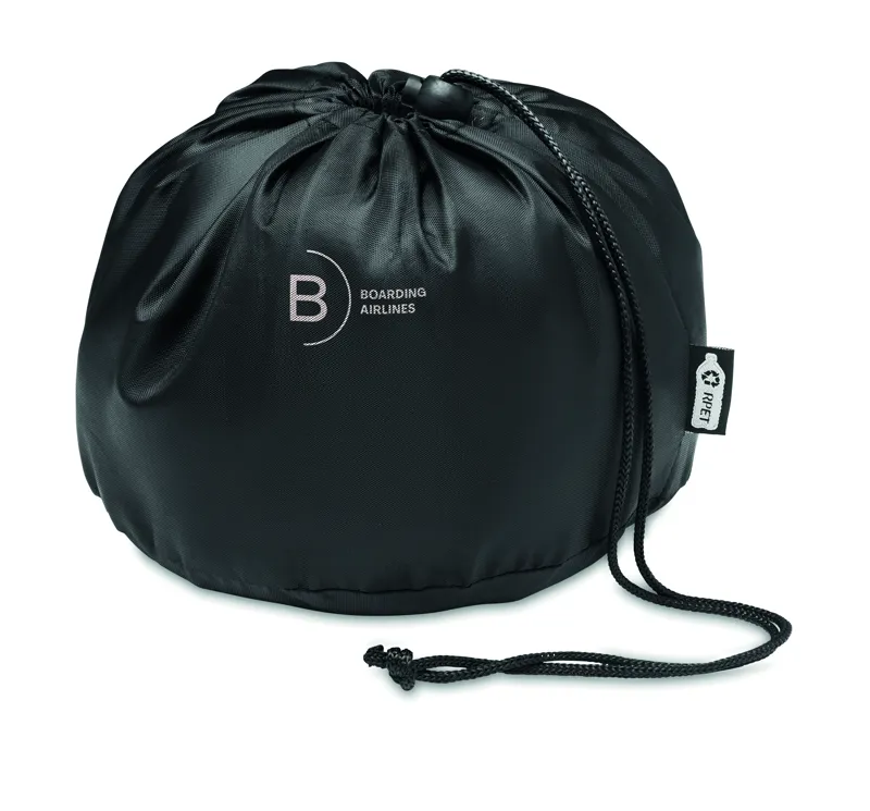 Habszivaccsal töltött utazó nyakpárna. 210D RPET poliészter tárolózsákban.