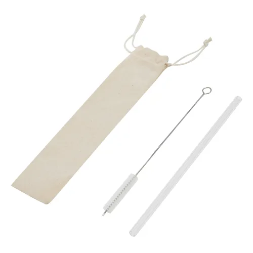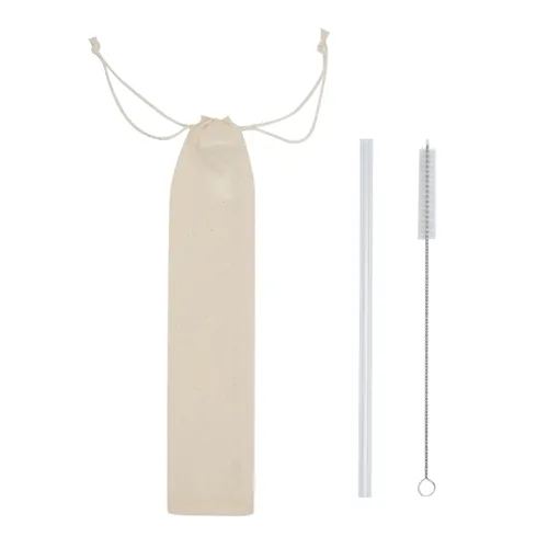 DRINK SMART üveg szívószál: átlátszó újra használható szívószál, egyenes kivitel, kefével a könnyű tisztítás érdekében, környezetbarát vászontasakban