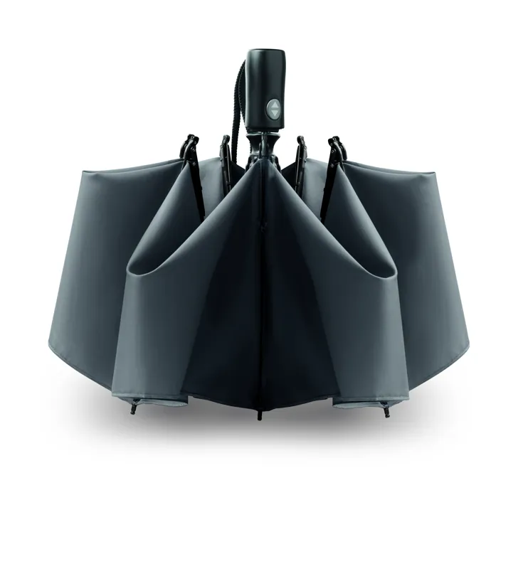 23 colos kifordítható, 3 szakaszos összecsukható esernyő 190T nyersselyem anyagból. Automata nyílódás és záródás. Krómozott acél nyél. Üvegszálas váz és fekete bevonatú belső keret. Fekete ABS markolat nyomógombbal. Színben hozzáillő tokkal.