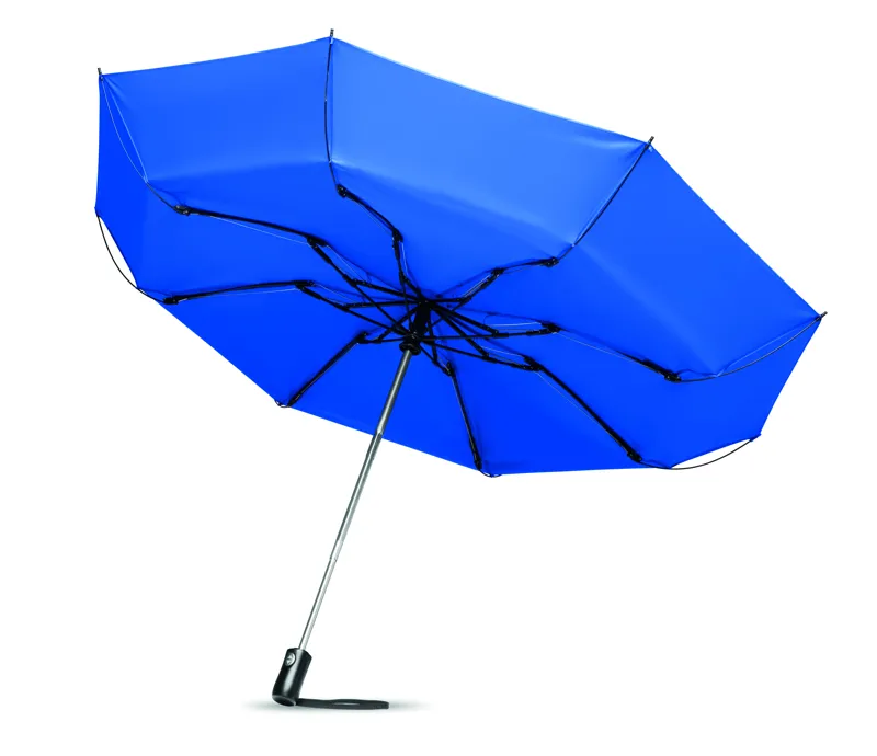 23 colos kifordítható, 3 szakaszos összecsukható esernyő 190T nyersselyem anyagból. Automata nyílódás és záródás. Krómozott acél nyél. Üvegszálas váz és fekete bevonatú belső keret. Fekete ABS markolat nyomógombbal. Színben hozzáillő tokkal.
