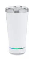 Duplafalú, rozsdamentes acél szigetelt thermo pohár ivófedéllel és vezeték nélküli hangszóróval, többszínű LED lámpával, kihangosító funkcióval és beépített újratölthető akkumulátorral. 440 ml.