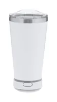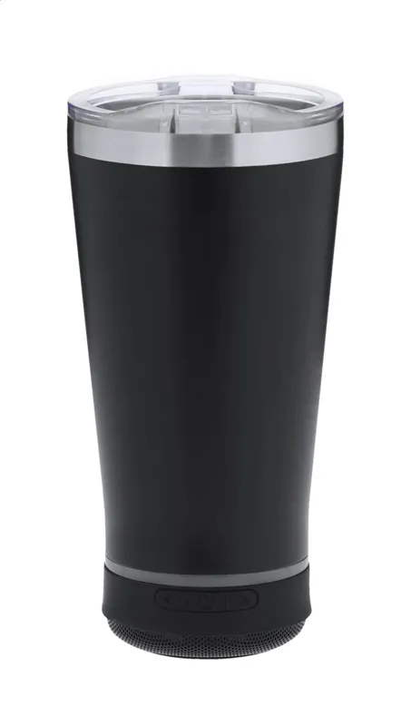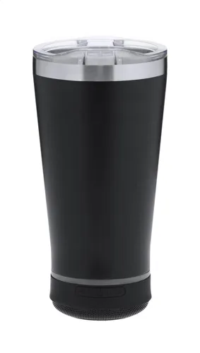 Duplafalú, rozsdamentes acél szigetelt thermo pohár ivófedéllel és vezeték nélküli hangszóróval, többszínű LED lámpával, kihangosító funkcióval és beépített újratölthető akkumulátorral. 440 ml.
