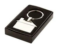 Ház alakú, fém kulcstartó, fekete díszdobozban szállítjuk.