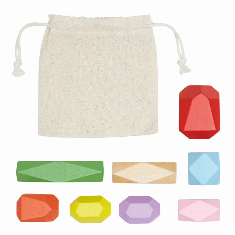 EACH OTHER ügyességi játék: 8 db színes fa formával, környezetbarát pamut tasakban