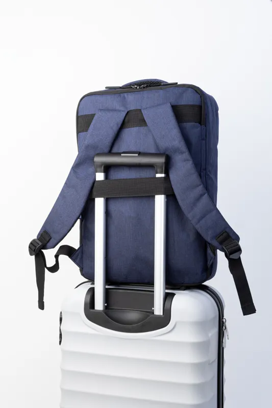 Kétfunkciós RPET hátizsák és irattáska cipzáras rekesszel és párnázott laptoprekesszel (15") Bőröndre rögzíthető szíjjal, párnázott hát- és vállpántokkal. 300D RPET poliészter, megkülönböztető RPET címkével.