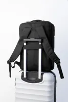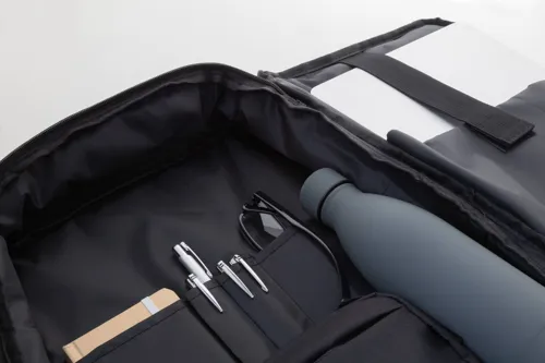 Kétfunkciós RPET hátizsák és irattáska cipzáras rekesszel és párnázott laptoprekesszel (15") Bőröndre rögzíthető szíjjal, párnázott hát- és vállpántokkal. 300D RPET poliészter, megkülönböztető RPET címkével.