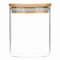 ECO STORAGE S üveg tároló légmentesen záródó bambusz fedéllel: tésztafélék, gabonafélék, fűszerek, tea, kávé, egyéb élelmiszerek számára, kapacitása: kb. 450 ml