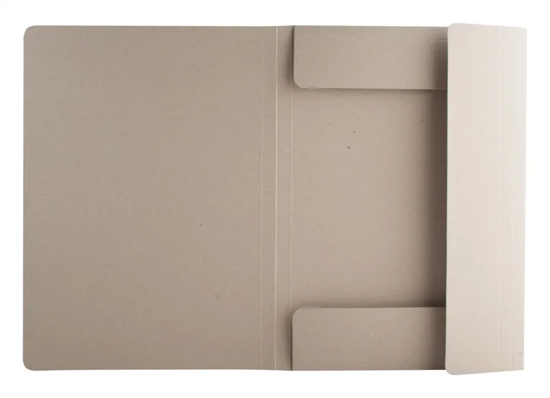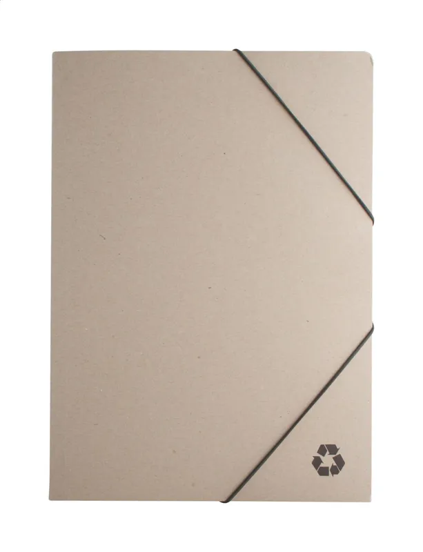 Újrahasznosított papírból készült, gumizsinórral zárható iratmappa.