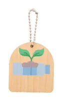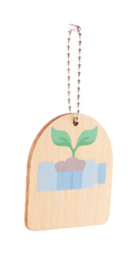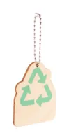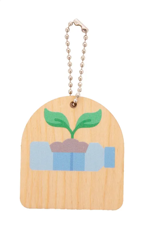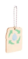 Rétegelt nyírfából készült, környezetvédelmi témájú kulcstartó fém karikával.
