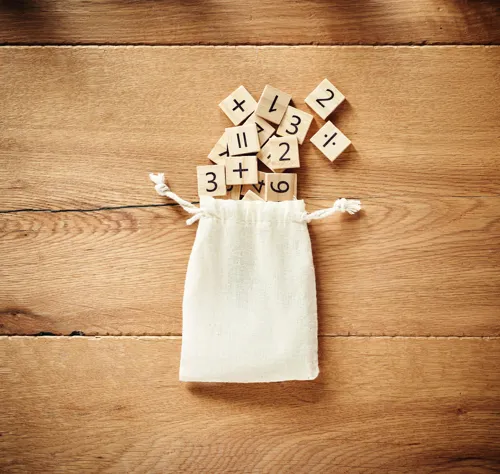Fa oktató számoló játék pamut tasakban. 32 darabot tartalmaz.