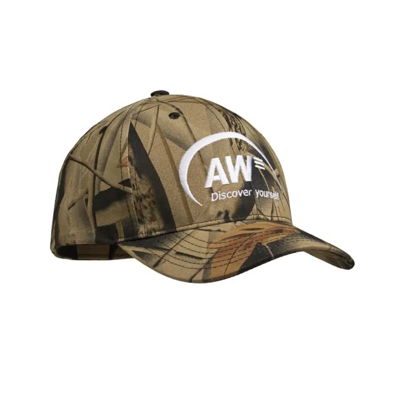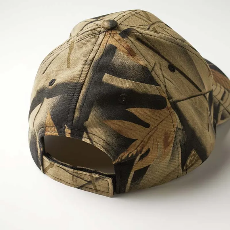 6 paneles baseball sapka terepszínű mintás pamut anyagból. Közepes profilú, előhajlított ellenzővel, szellőzőnyílásokkal, hozzáillő poliészter-pamut izzadságfelszívó pánttal, valamint állítható pánttal a testreszabott és kényelmes illeszkedés érdekében. A megerősített, mégis rugalmas felépítés megőrzi a sapka alakját. A sapkák egyesítik a funkcionalitást, a stílust és a márkamegjelenést. Hozza létre saját stílusát a rendelkezésre álló testreszabási lehetőségek széles skálájának felhasználásával, és érjen el maximális márka megjelenést.