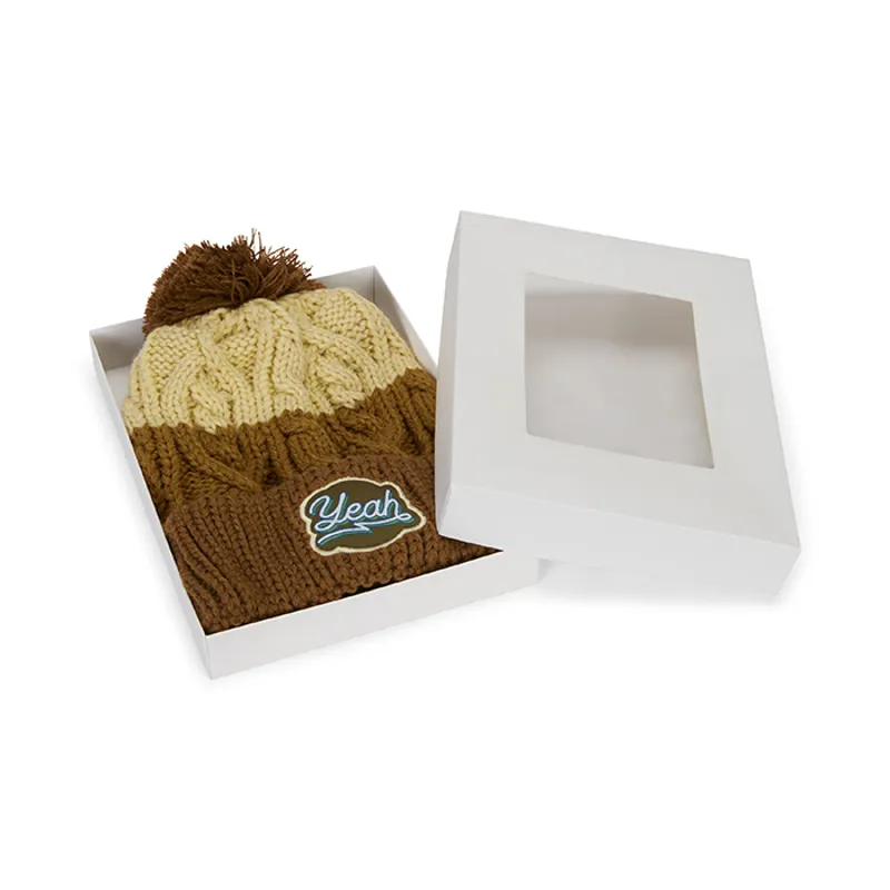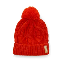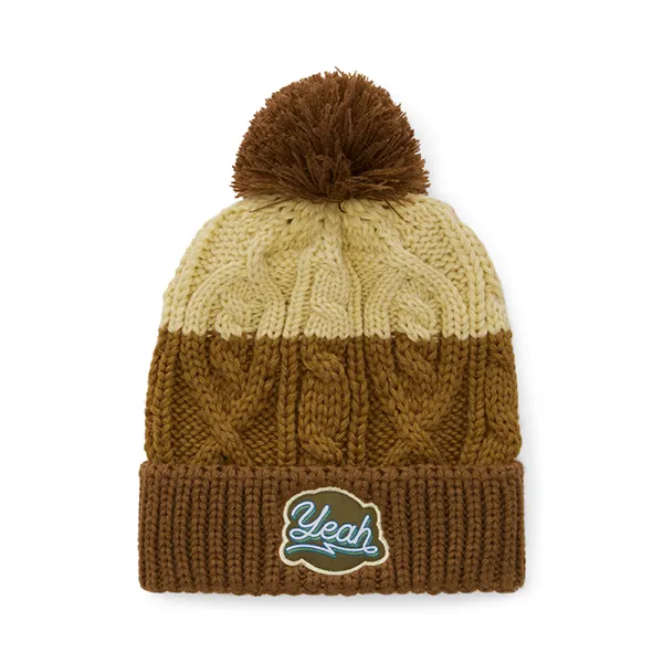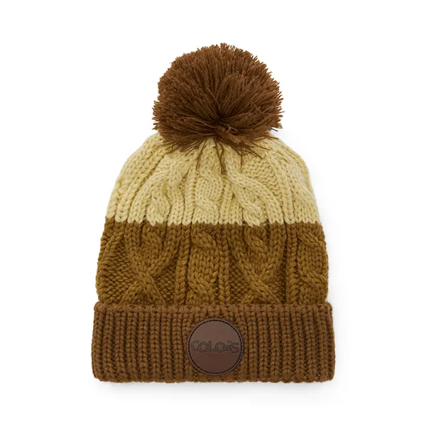 Egyedi csavart mintás, kötött sapka bordázott mandzsettával és pomponnal.