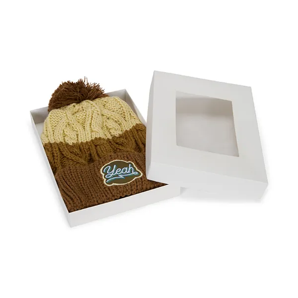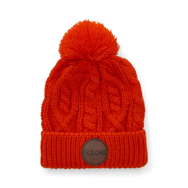 Csavart mintás, egyrétegű akril kötött sapka 1x1 bordás mandzsettával és színazonos pomponnal. Egy, kettő vagy akár három színben is elkészíthető.