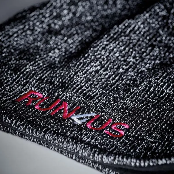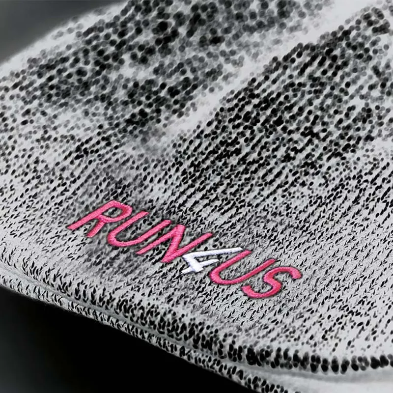 Válassza ki az akril fonál színét, kombinálja a szürke fényvisszaverő fonalakkal, és adja hozzá logóját. A logók hímzése mellett választhat nagyobb részletgazdagságot lehetővé tévő szövött felvarrót is, vagy gumis nyomtatást.