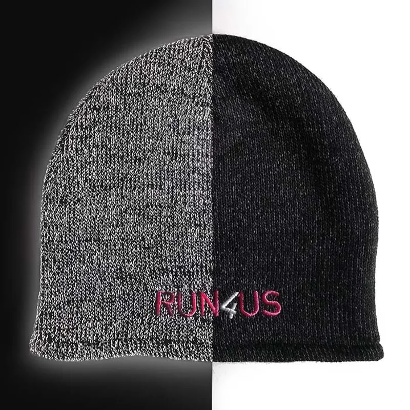 Egyedi duplarétegű akril kötött sapka fényvisszaverő szálakkal.