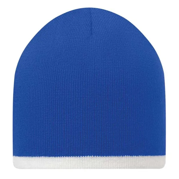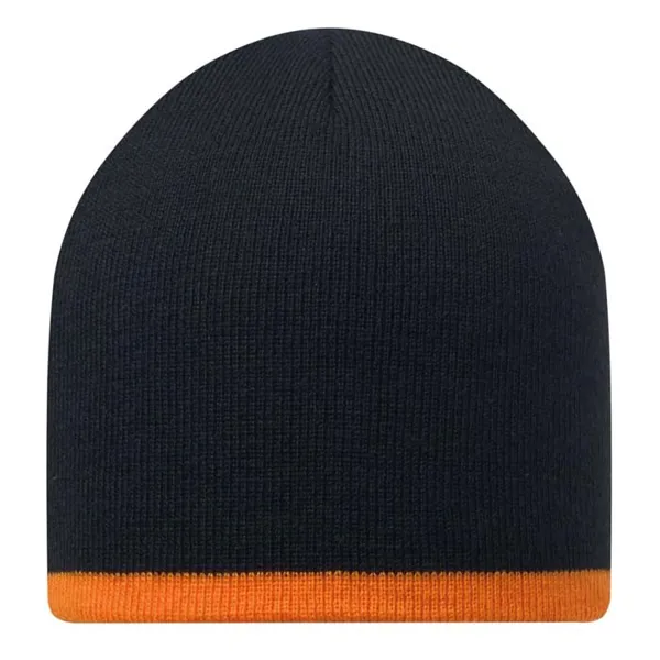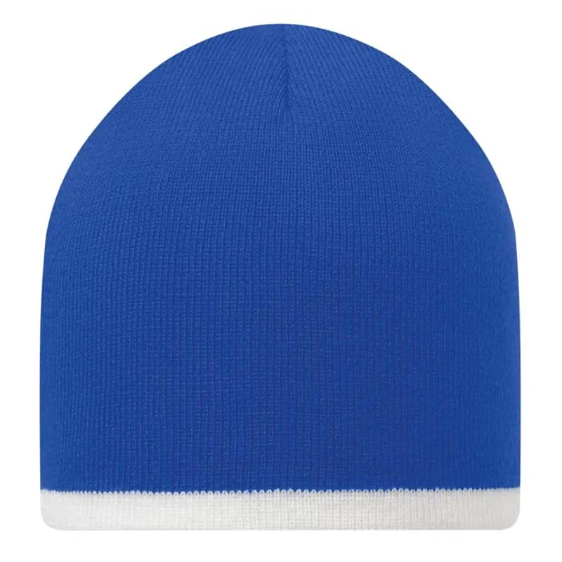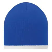 Egyedi duplarétegű akril kötött sapka színes szegélycsíkkal.