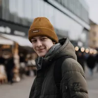 Egyedi duplarétegű, bordázott "fisherman" stílusú akril kötött sapka keskeny mandzsettával.