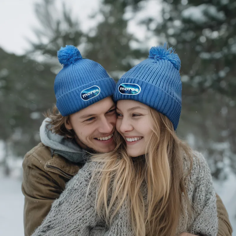 Egyedi klasszikus, bordázott, akril mandzsettás kötött sapka pomponnal.