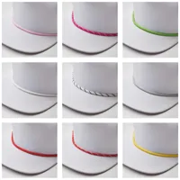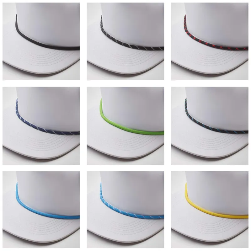 Könnyű, 130 g/m² nyersselyem (pongee) anyagból készült, lapos napellenzős sapka, opcionális, kontrasztos színű dekoratív zsinórral.