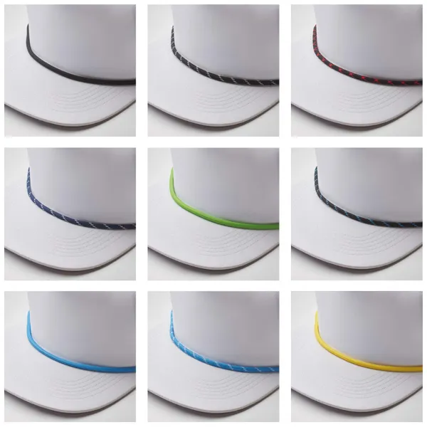 Könnyű, 130 g/m² nyersselyem (pongee) anyagból készült, lapos napellenzős sapka, perforált hálós hátoldallal és opcionális, kontraszt színű dekoratív zsinórral.