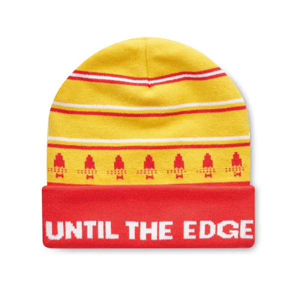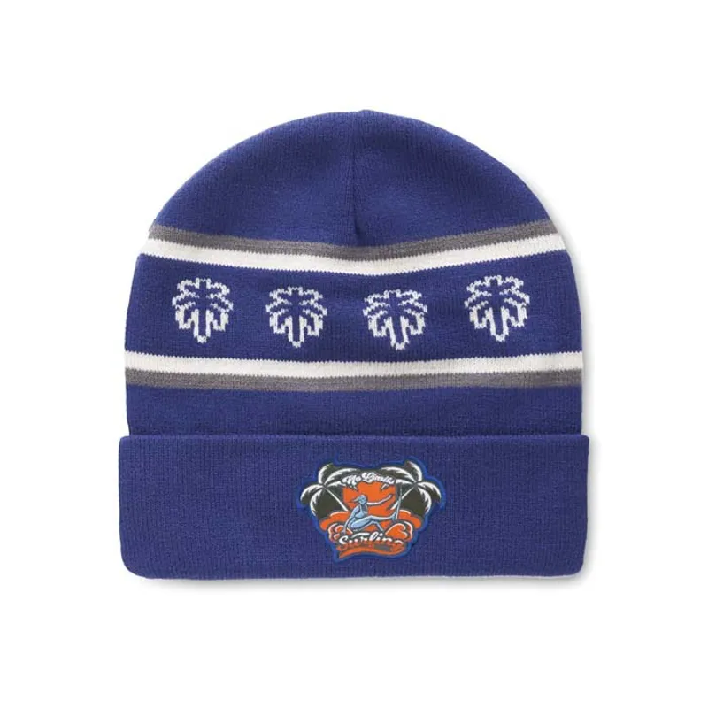 Egyedi mintás, akril jacquard mandzsettás kötött sapka.