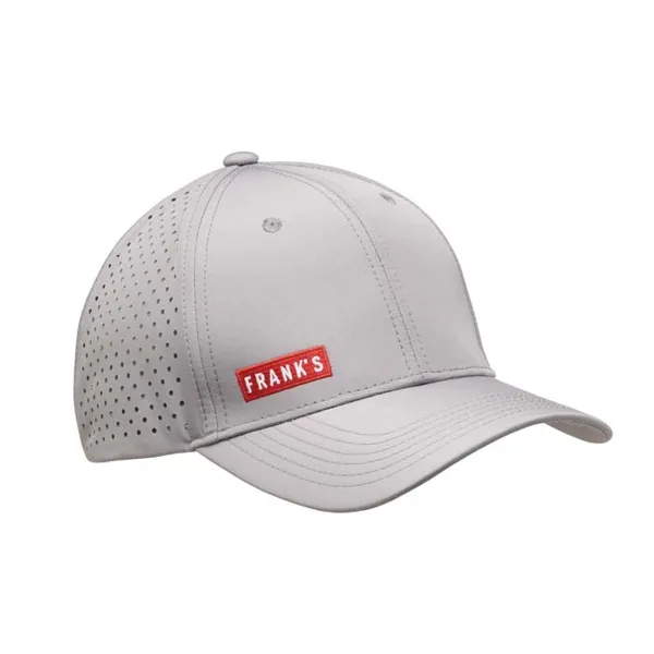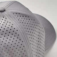 Könnyű, 130 g/m² nyersselyem (pongee) anyagból készült baseball sapka, optimális légáramlást biztosító, perforált hátoldallal.