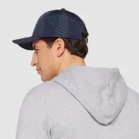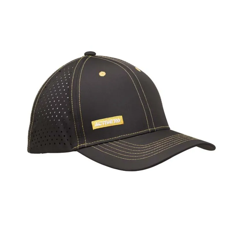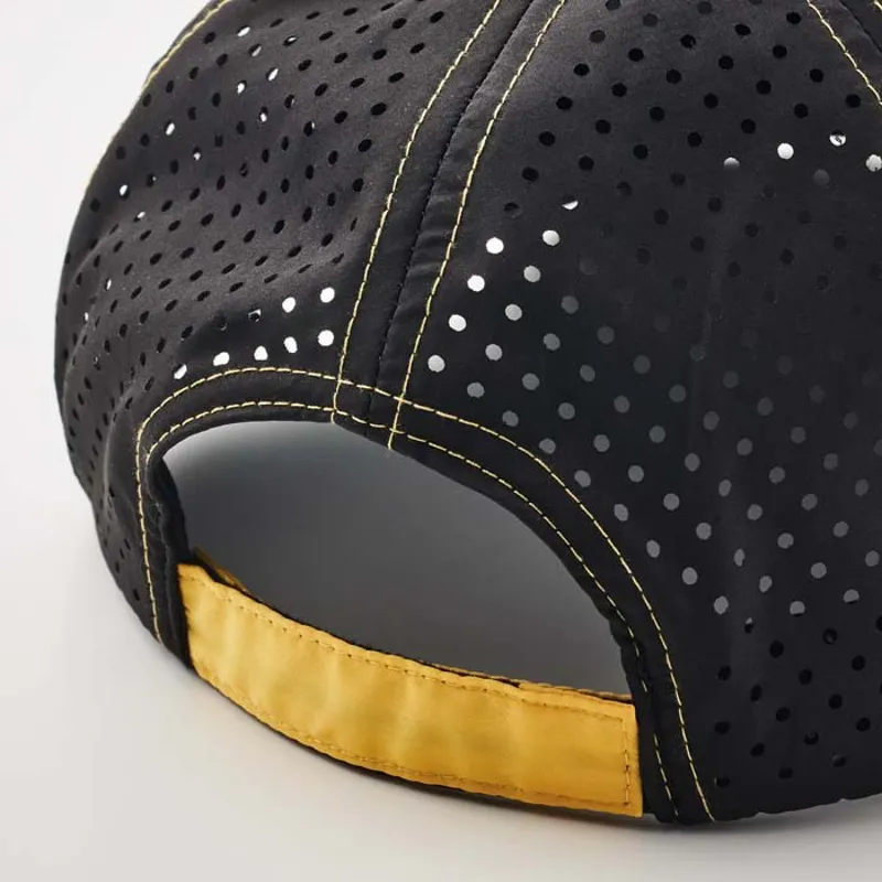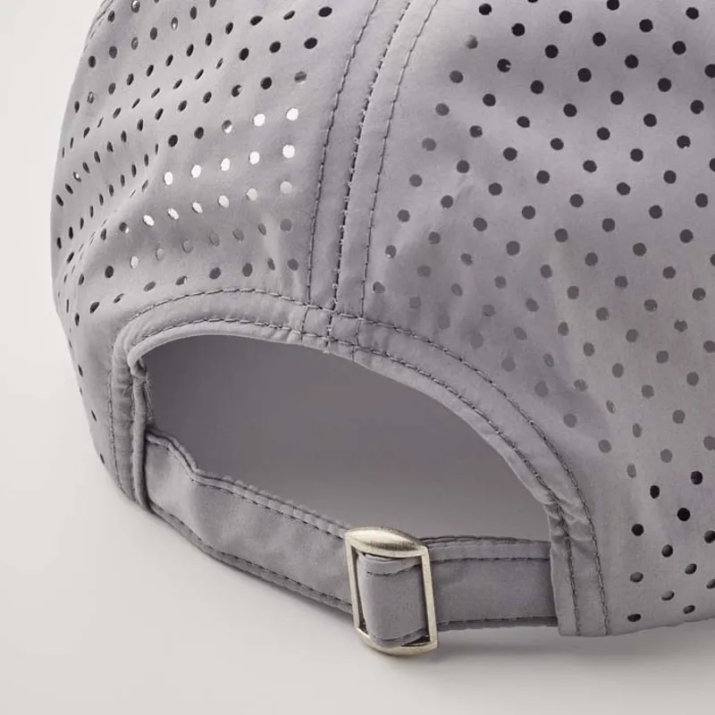 Közepes profilú, előhajlított ellenzővel és hozzáillő poliészter-pamut izzadságfelszívó pánttal, valamint állítható zsinóros záródással a testreszabott és kényelmes illeszkedés érdekében.