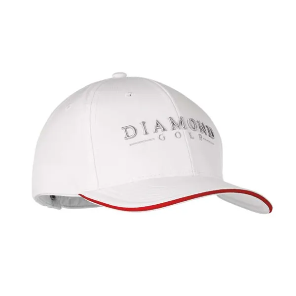 Közepes profilú, előhajlított szendvics ellenzővel, szellőzőnyílásokkal, hozzáillő poliészter-pamut izzadságfelszívó pánttal, valamint állítható pánttal a testreszabott és kényelmes illeszkedés érdekében. A megerősített, mégis rugalmas felépítés megőrzi a sapka alakját.